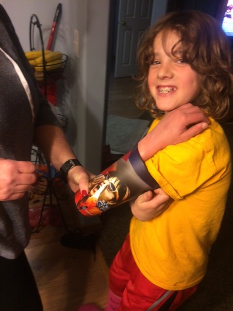A random picture of the antics of my Jbird. That kid amazes me sometimes. He got his arm stuck in this cup. (Lets just say that he figured out you could create a great vacuum and make some wild noises as you pull your elbow out. So, he took the other elbow and jammed really hard.) We could not get it off, so ended up cutting the cup. At the end it was all smiles and laughs, but lots of tears in the middle.